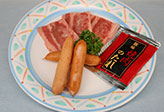 牛バラ25g×2枚 / 豚バラ25g×2枚 / 鶏もも肉70g×2枚 / ソーセージ×3本