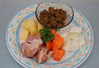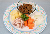 豚肉角切り50g / 人参30g / じゃが芋50g / 玉ねぎ50g / カレールー50g / 生米かライス