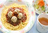 パスタ・ミートソース・ミートボール・チキンナゲット・カボチャサラダ・ゼリー