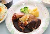 ハンバーグ・フランク・チキンソテー・温野菜・サラダ・ごはん・味噌汁