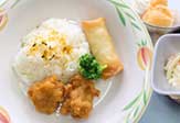 チキンライス・野菜コロッケ・海老せん・マカロニサラダ・プチシュークリーム