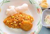 鶏肉50g / にんじん30g / じゃがいも50g / 玉ねぎ50g / カレールー50g / 生米かライス