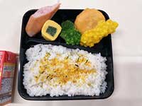 ポークソーセージ・トウモロコシ揚げ・ブロッコリー・卵ロール・チキンナゲット・ふりかけ御飯